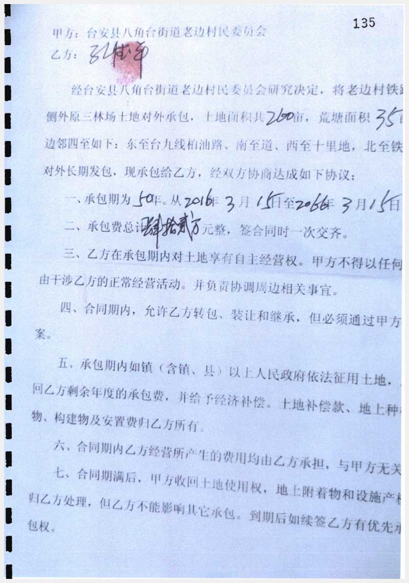 132號 臺安縣八角臺街道老邊村土地及魚塘承包經營權