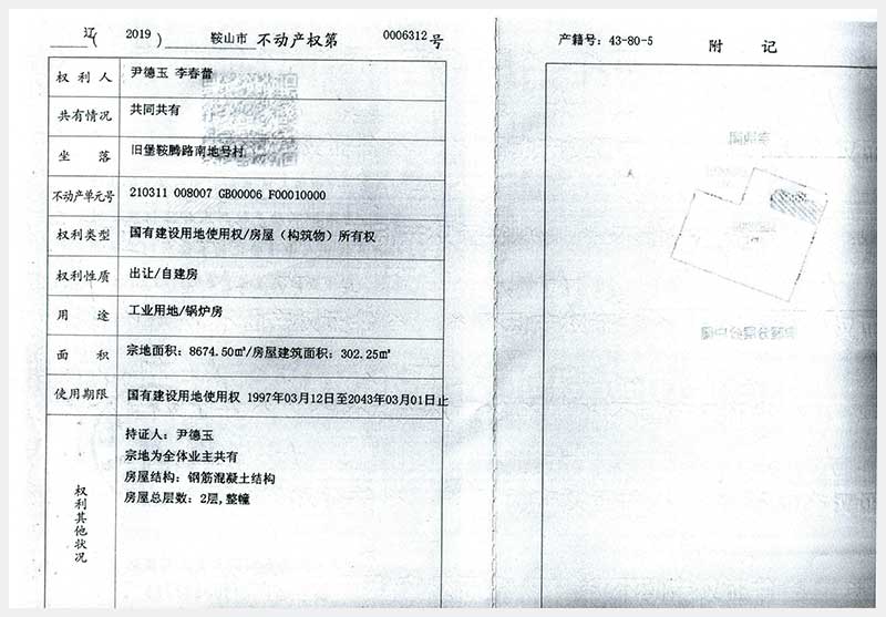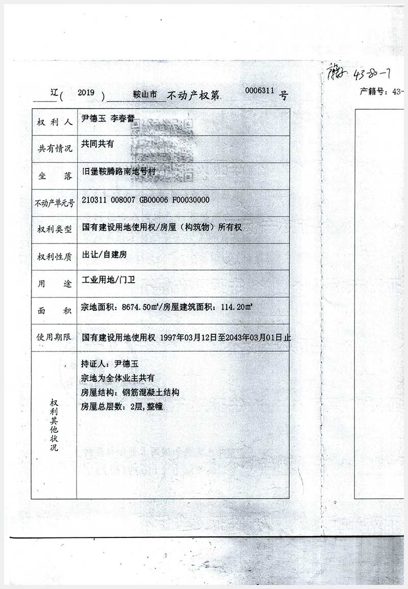 名稱:鞍山市舊堡鞍騰路南地號(hào)村房產(chǎn)及土地使用權(quán) 面積:房產(chǎn):5825.96㎡;土地:8674.5㎡ 瀏覽次數(shù):288