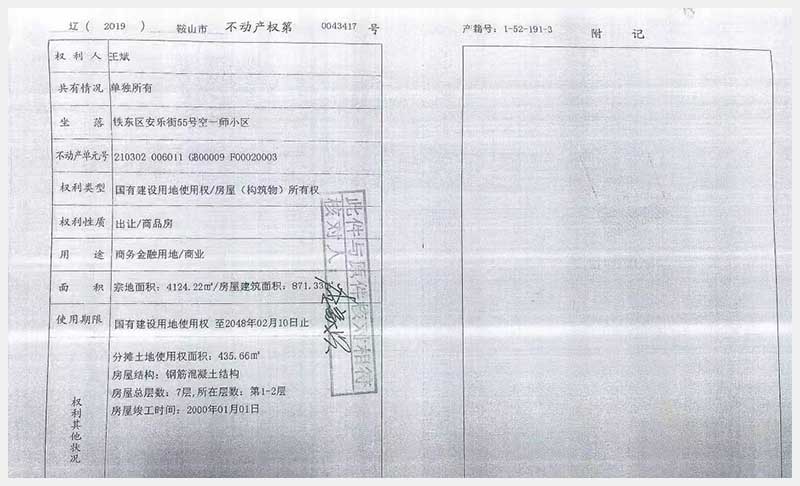 名稱:鞍山市鐵東區(qū)安樂街55號空一師小區(qū)房產(chǎn) 面積:1781.89㎡ 瀏覽次數(shù):4