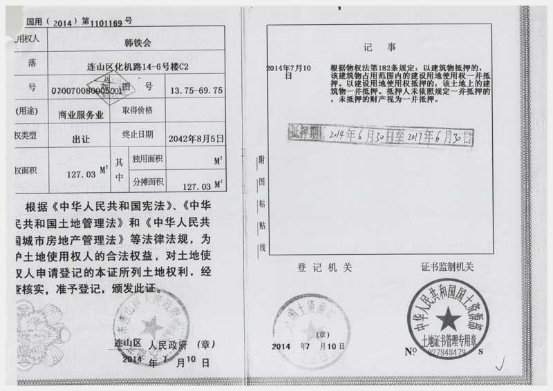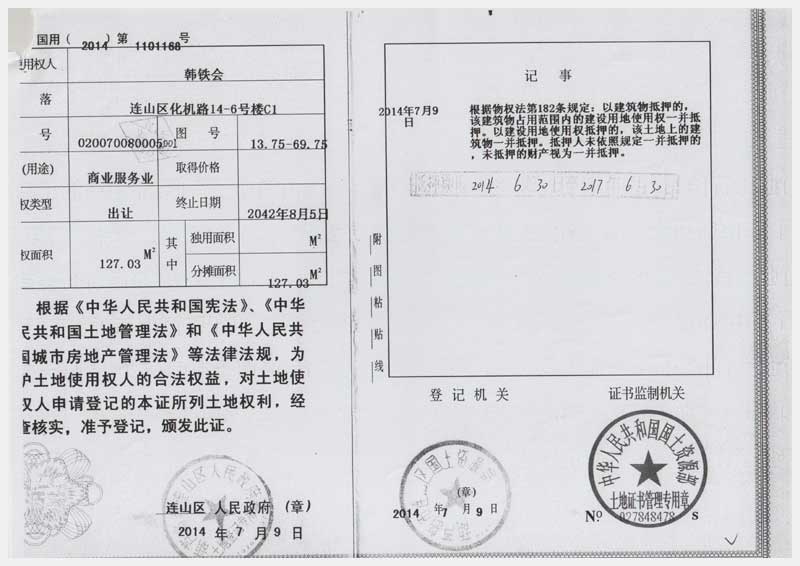 地址:遼寧省葫蘆島市連山區(qū)化機(jī)路14-6 標(biāo)的號:1
