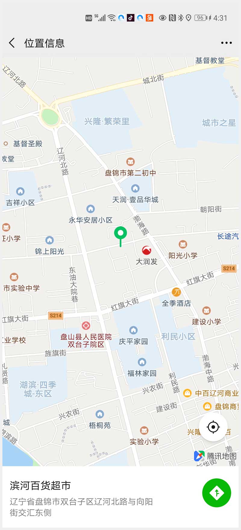 12號 盤錦雙臺子區(qū)綠野小區(qū)三處商網(濱河百貨超市)