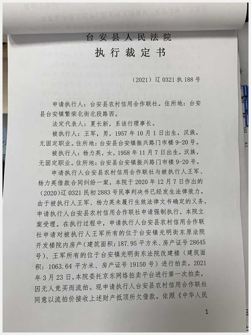 地址:臺安鎮(zhèn)光明街東原法院開發(fā)樓 標(biāo)的號:78-1