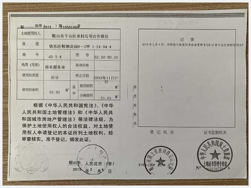 地址:鞍山市鐵東區(qū)鞍鋼花園 標的號:68