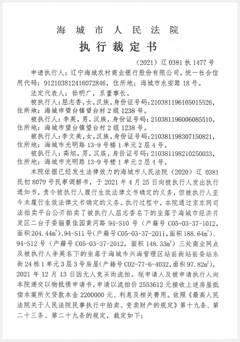 遼寧嘉和拍賣有限公司   咨詢熱線:024-22529012