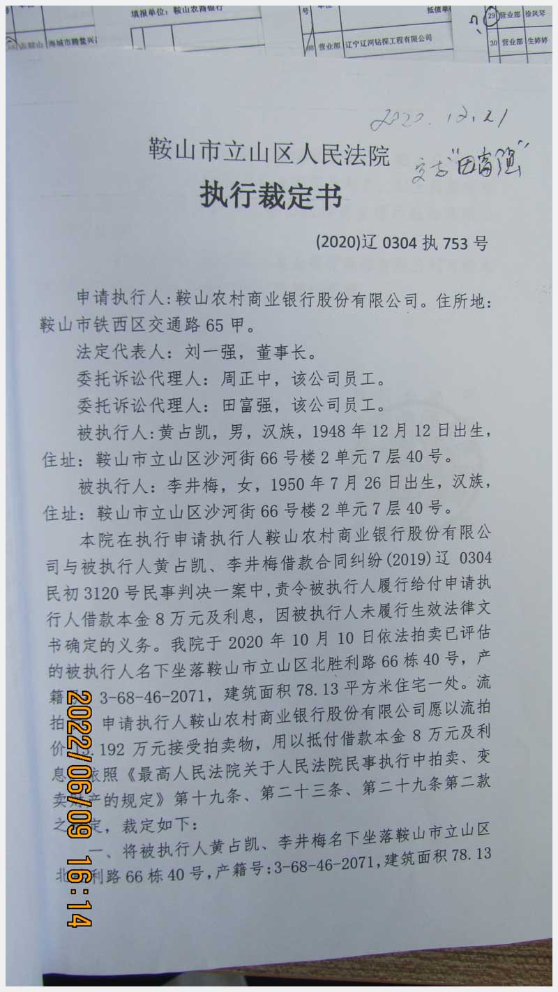 地址:鞍山市立山區(qū)北勝利路66棟40號 標(biāo)的號:86