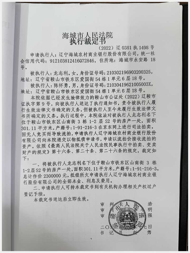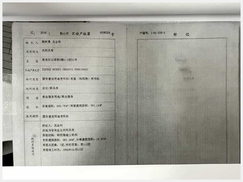 地址:鞍山市鐵東區(qū)山南街3棟 標的號:212