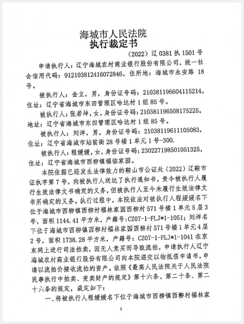 地址:海城市西柳鎮(zhèn)西柳村福臨家園西柳村571號 標(biāo)的號:213-1