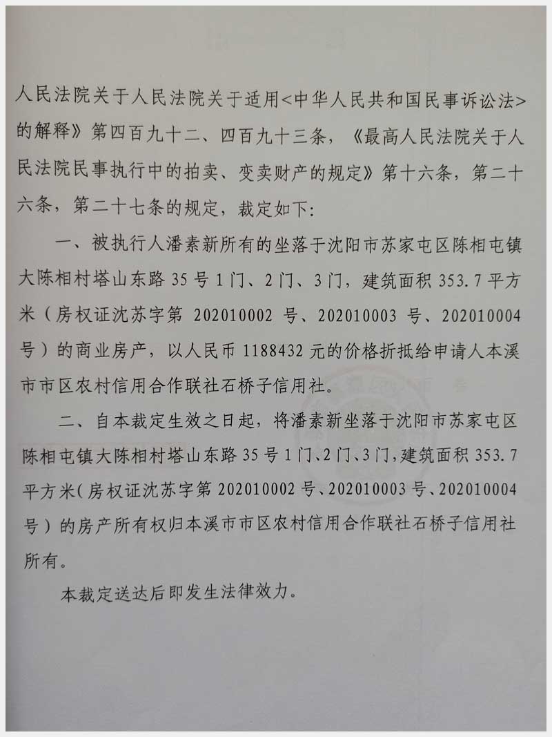 3號(hào) 沈陽市蘇家屯區(qū)陳相鎮(zhèn)大陳相村塔山東路35號(hào)3處房產(chǎn)