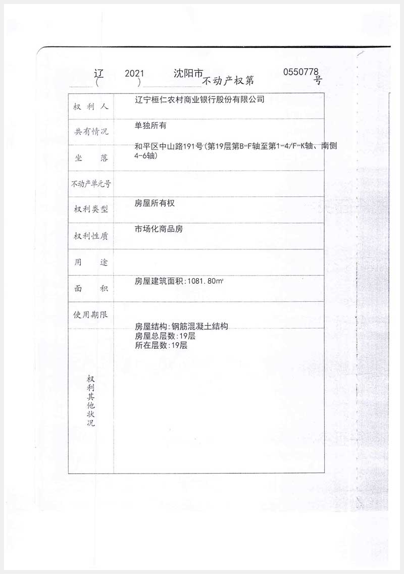59號 沈陽市和平區(qū)中山路191號第19層第B-F軸至第1-4/f-k軸南側(cè)4-6軸房產(chǎn)