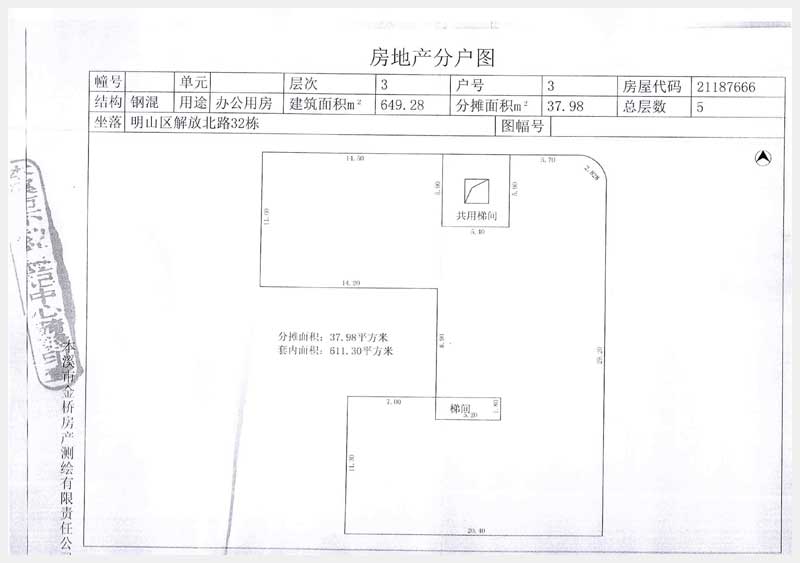 名稱:本溪市明山區(qū)解放北路32東3層房產(chǎn) 面積:649.28 ㎡ 瀏覽次數(shù):1029