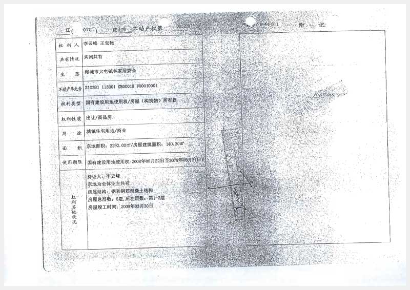 242號(hào) 海城市王石鎮(zhèn)代千村圣源山莊房產(chǎn)