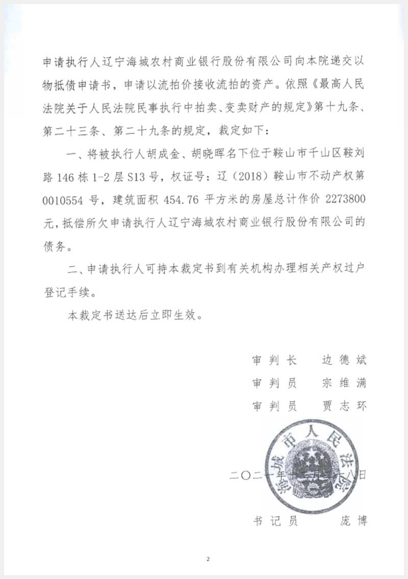 地址:鞍山市千山區(qū)鞍劉路148棟 標(biāo)的號(hào):243