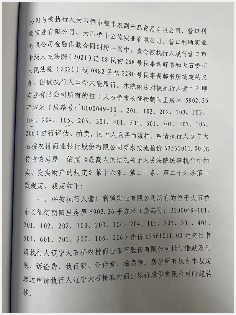地址:大石橋市長征街陶瓷里 標(biāo)的號:6