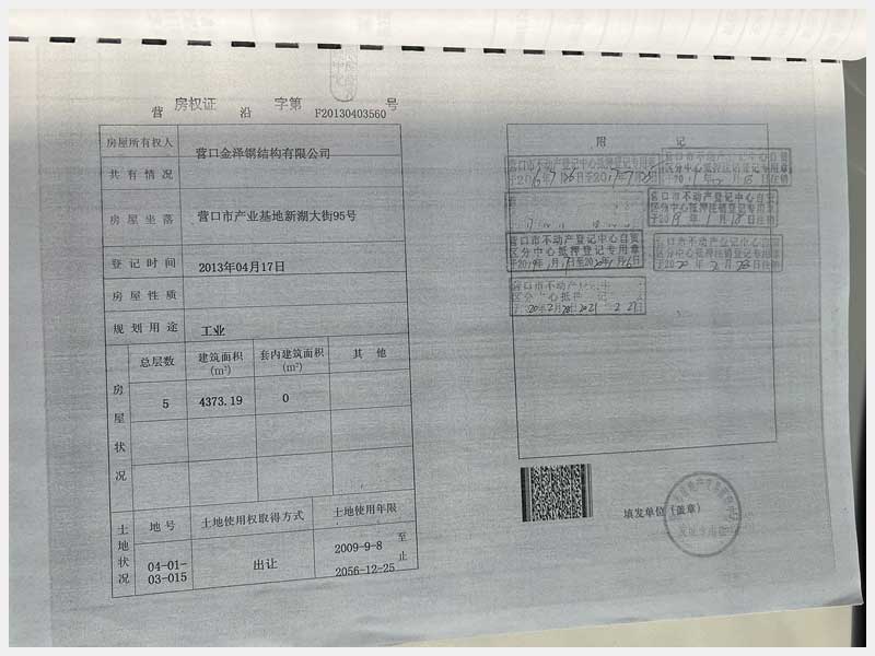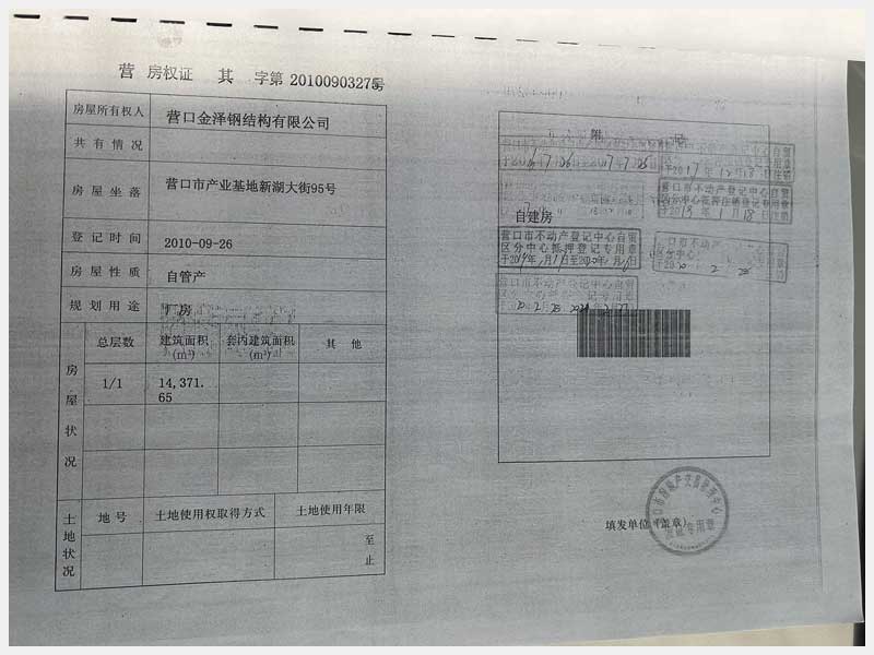 7號(hào) 營(yíng)口市產(chǎn)業(yè)基地新湖大街95號(hào)房產(chǎn)及土地使用權(quán)