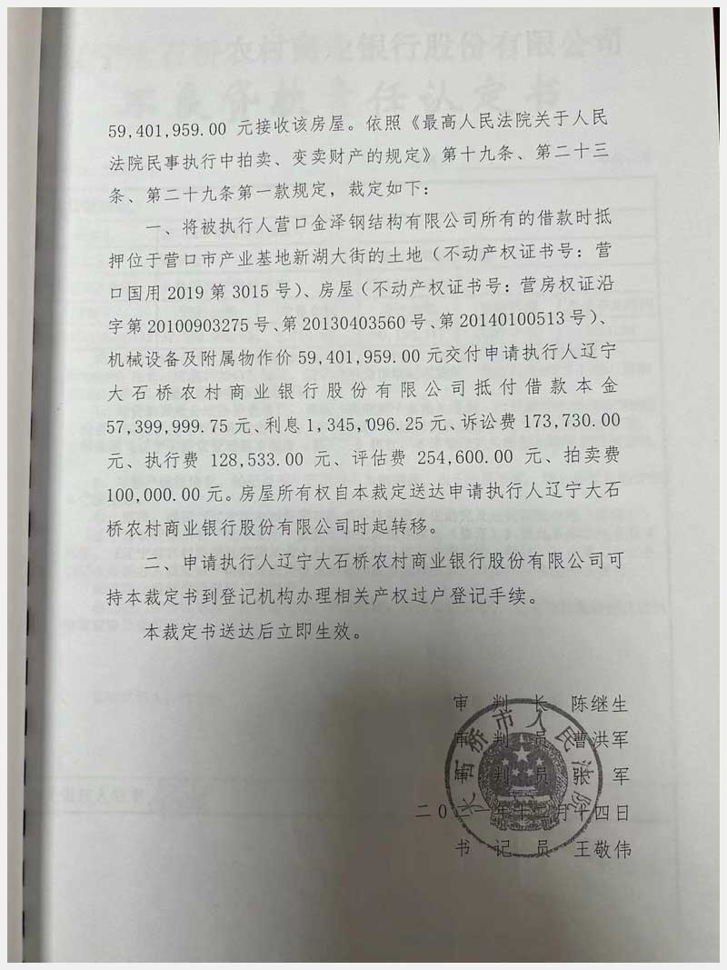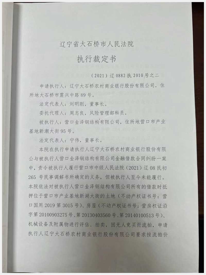 地址:營(yíng)口市產(chǎn)業(yè)基地新湖大街95號(hào) 標(biāo)的號(hào):7