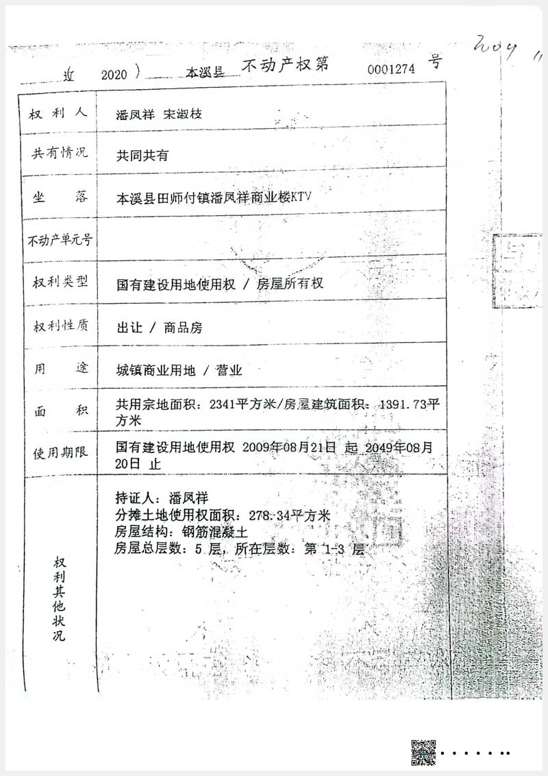 153-1號(hào) 本溪滿族自治縣田師付鎮(zhèn)潘鳳祥商業(yè)樓KTV