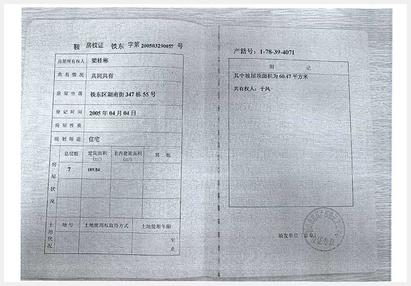 名稱:鞍山市鐵東區(qū)湖南街347棟55號(hào)房產(chǎn) 面積:189.84㎡ 瀏覽次數(shù):162