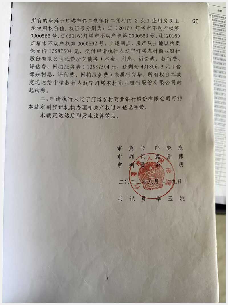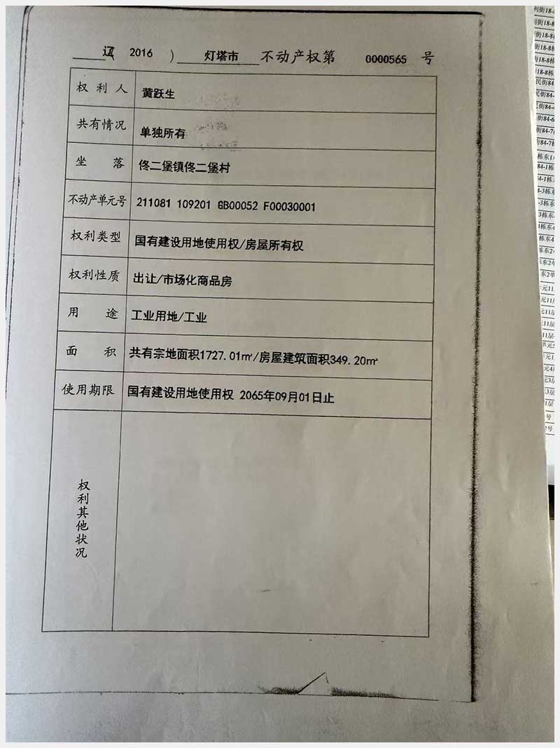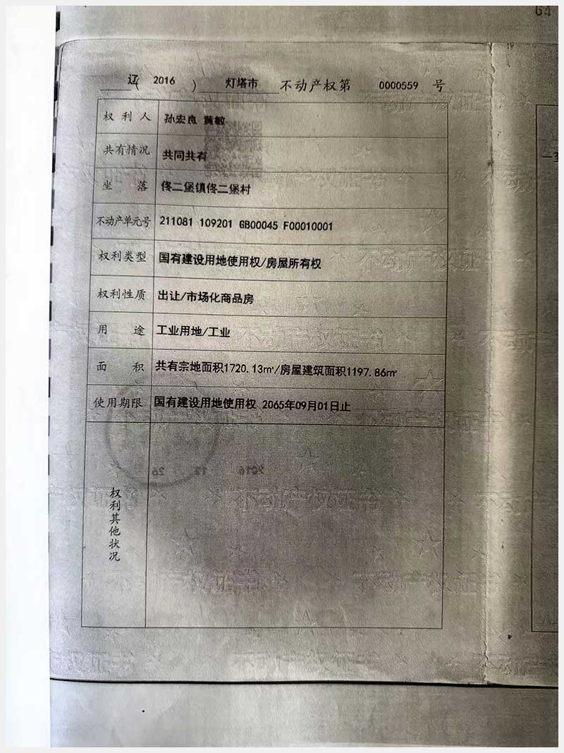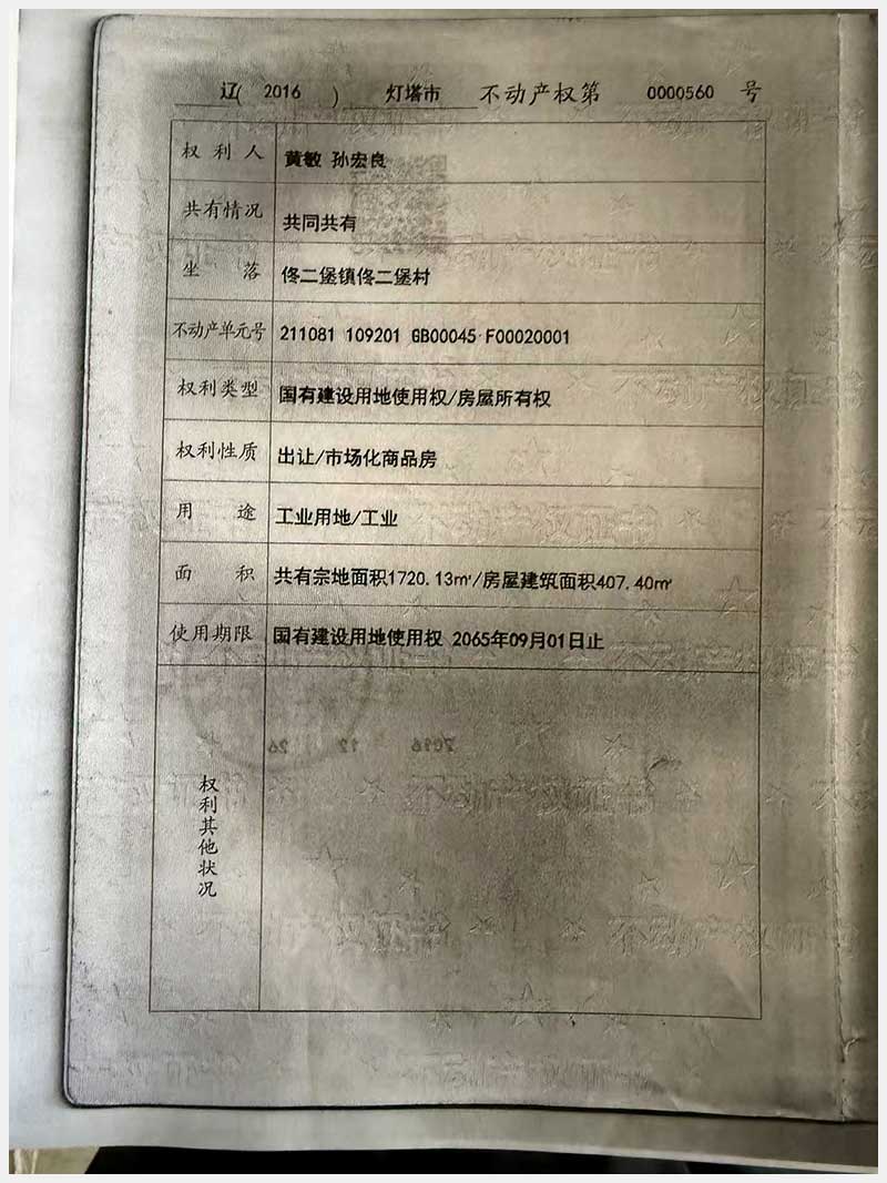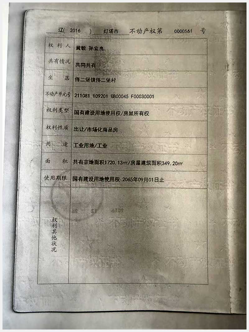 名稱:燈塔市佟二堡鎮(zhèn)佟二堡村房產(chǎn)及土地使用權(quán) 面積:房產(chǎn):1954.46㎡;土地:1720.13㎡ 瀏覽次數(shù):89
