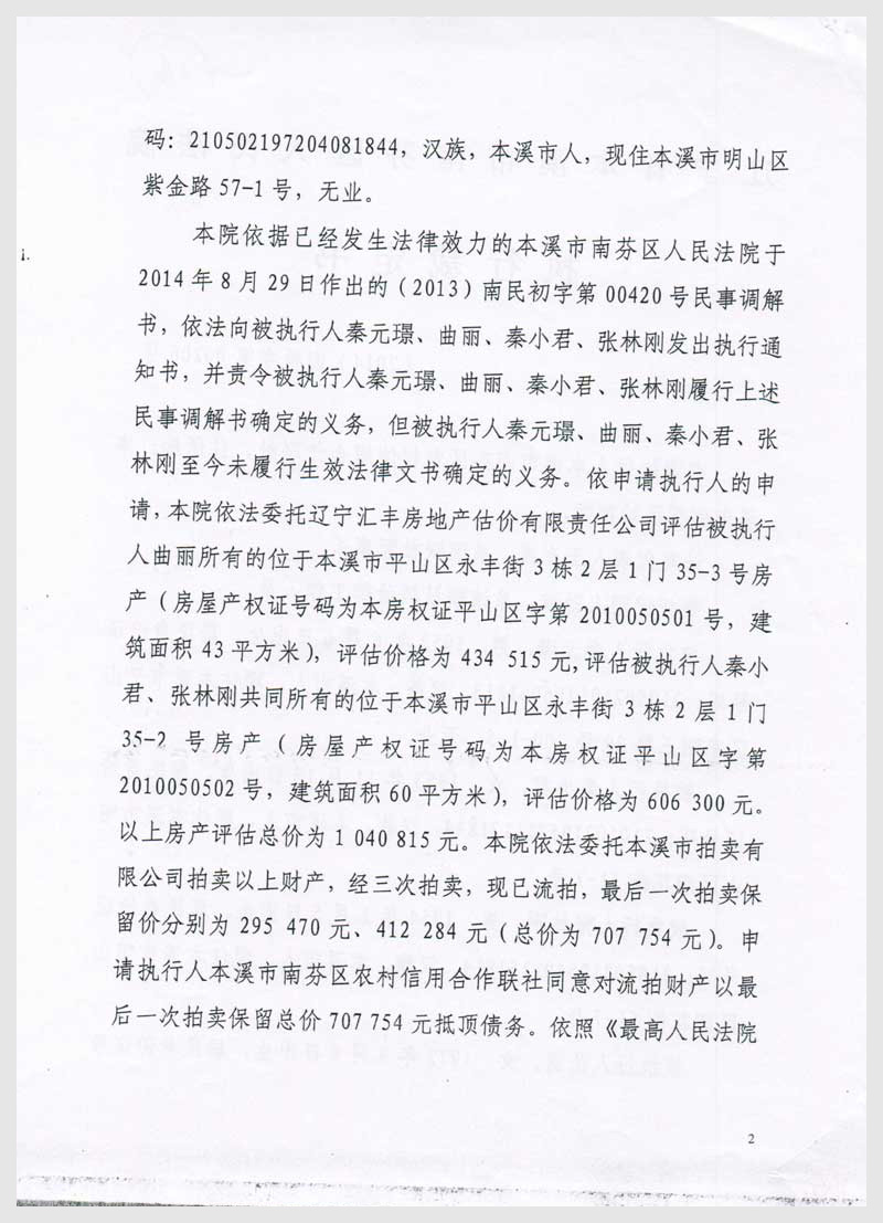 地址:本溪市平山區(qū)永豐街3棟2層1門35-2號和35-3號 標的號:14
