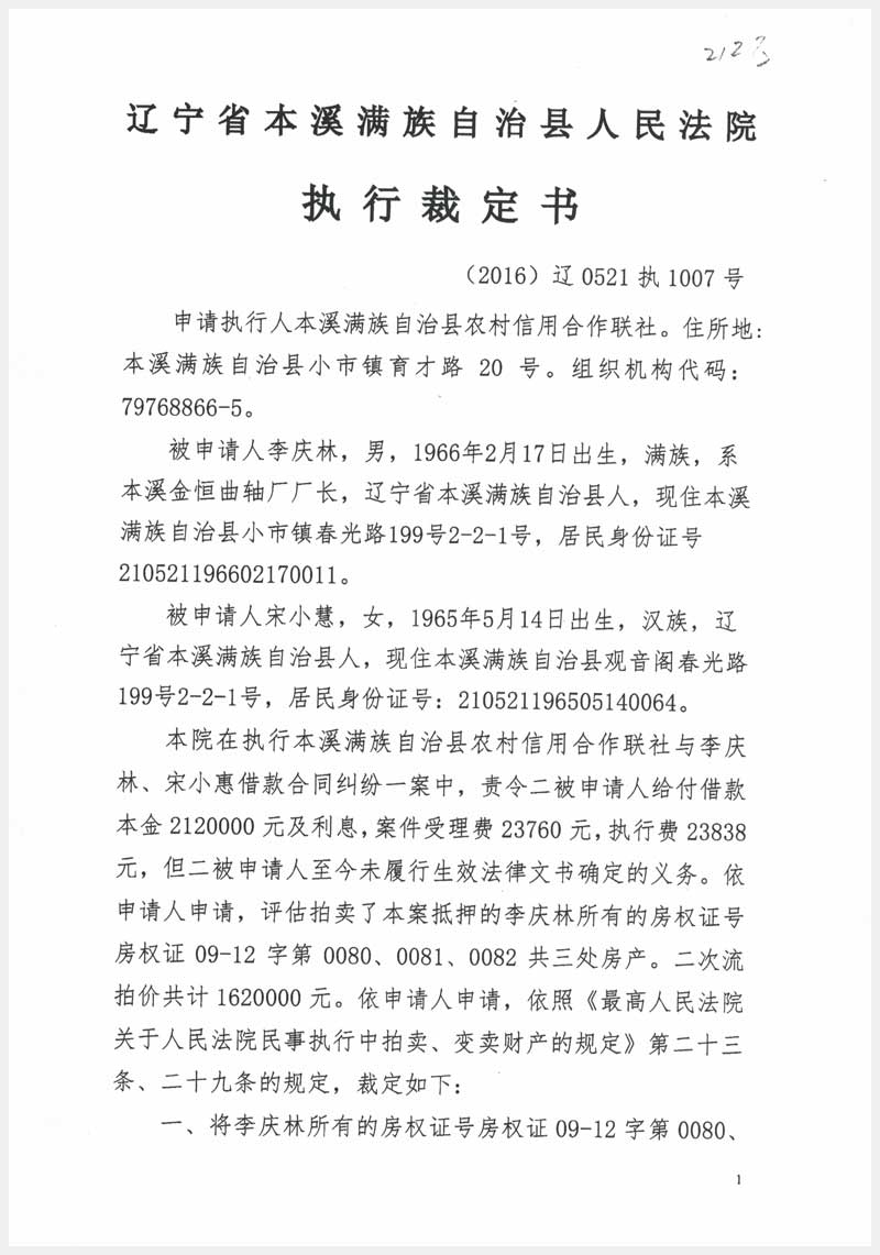 地址:本溪小市鎮(zhèn)磨石峪村 標的號:61