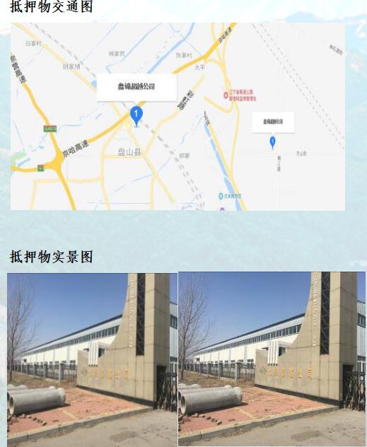 抵押物位于盤錦市雙臺子區(qū)盤山縣,交通便利。抵押房產(chǎn)位于抵押土地之上,抵押房產(chǎn)的狀態(tài)較好,從外部觀察為九成新,用途為辦公樓、倉儲等。抵押土地為國有出讓工業(yè)用地,狀態(tài)較好,中間部份大面積空置,地型寬闊規(guī)整,升值空間較大。