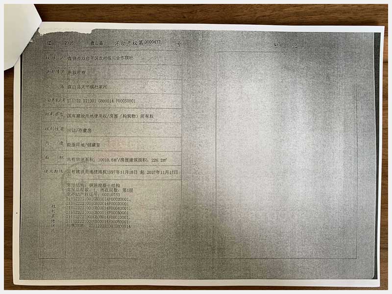 2號 盤錦盤山縣太平鎮(zhèn)杜家村房產及土地使用權(凌天冷凍有限公司)