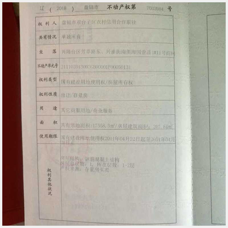 名稱:盤(pán)錦渤海地區(qū)海園商網(wǎng)0008棟11號(hào)房產(chǎn)(李陽(yáng)) 面積:207.84㎡ 瀏覽次數(shù):1433