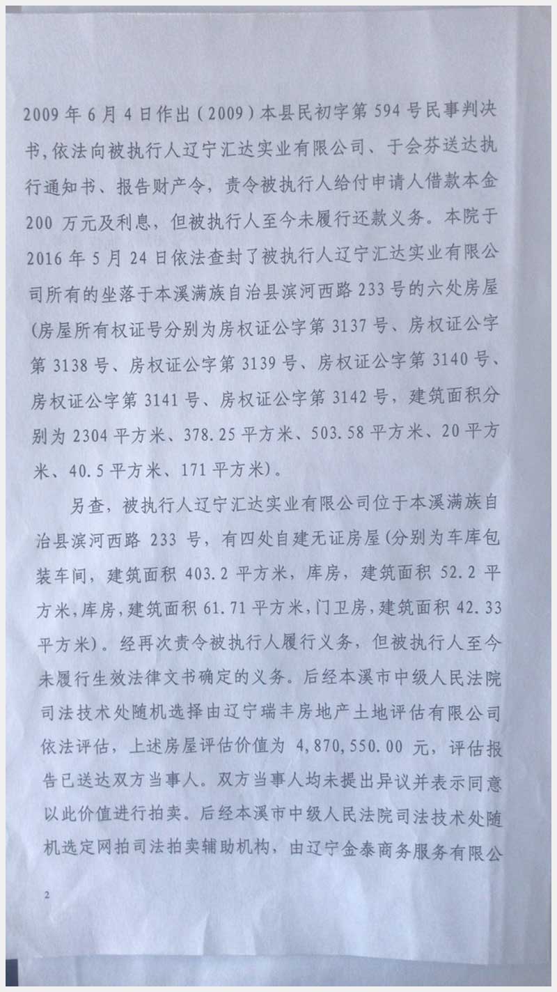 69號 本溪滿族自治縣濱河西路233號房產(chǎn)及土地使用權(quán)
