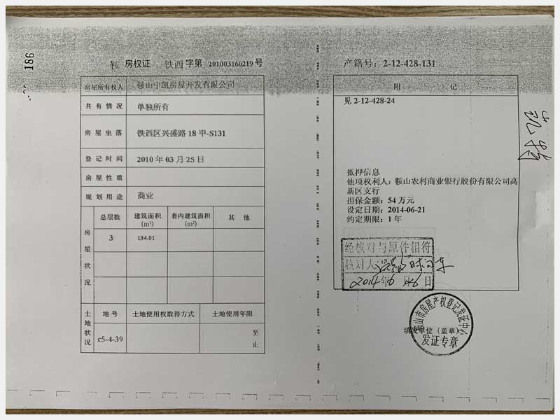 名稱:鞍山市鐵西區(qū)興盛路18甲房產(chǎn) 面積:2859.7㎡ 瀏覽次數(shù):1789