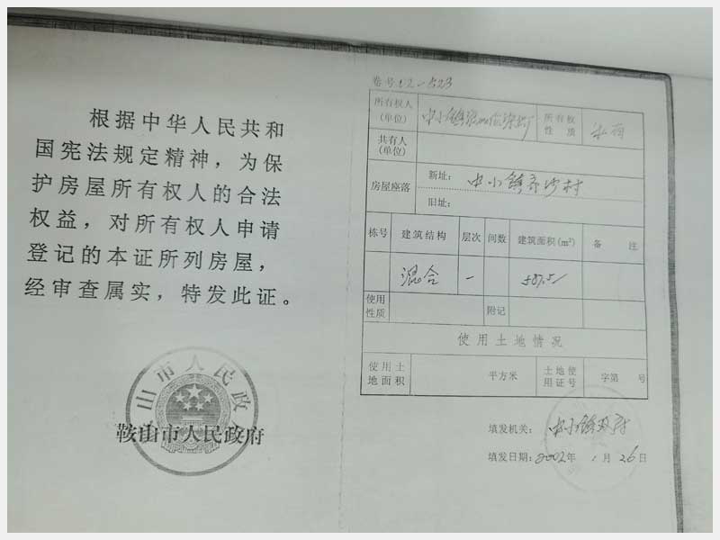 地址:海城市中小鎮(zhèn)齊沙河村 標(biāo)的號:101