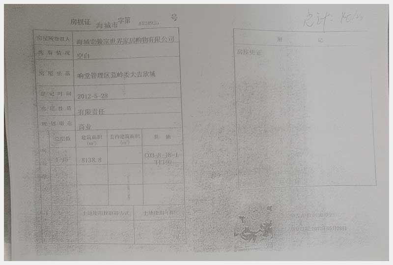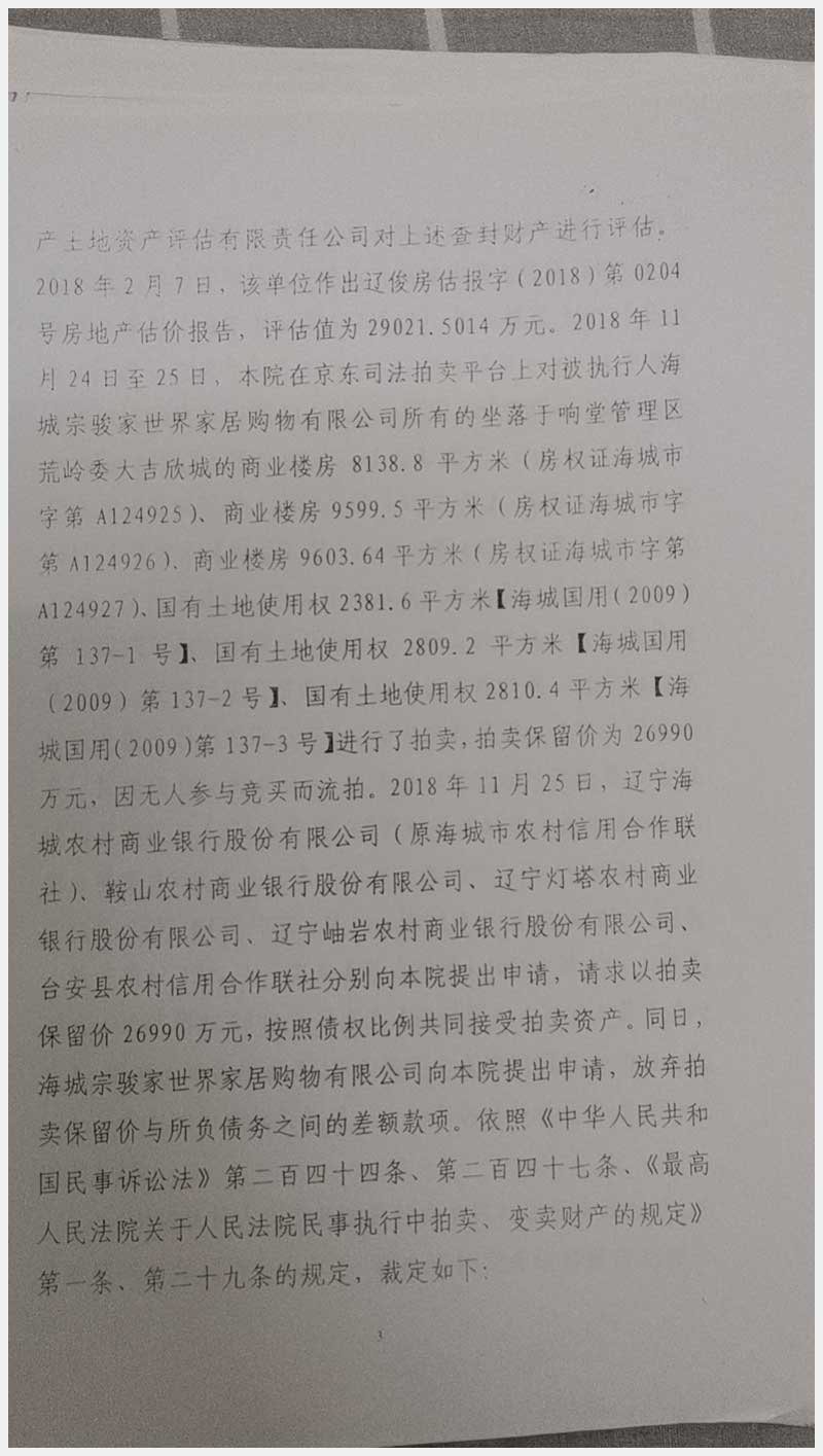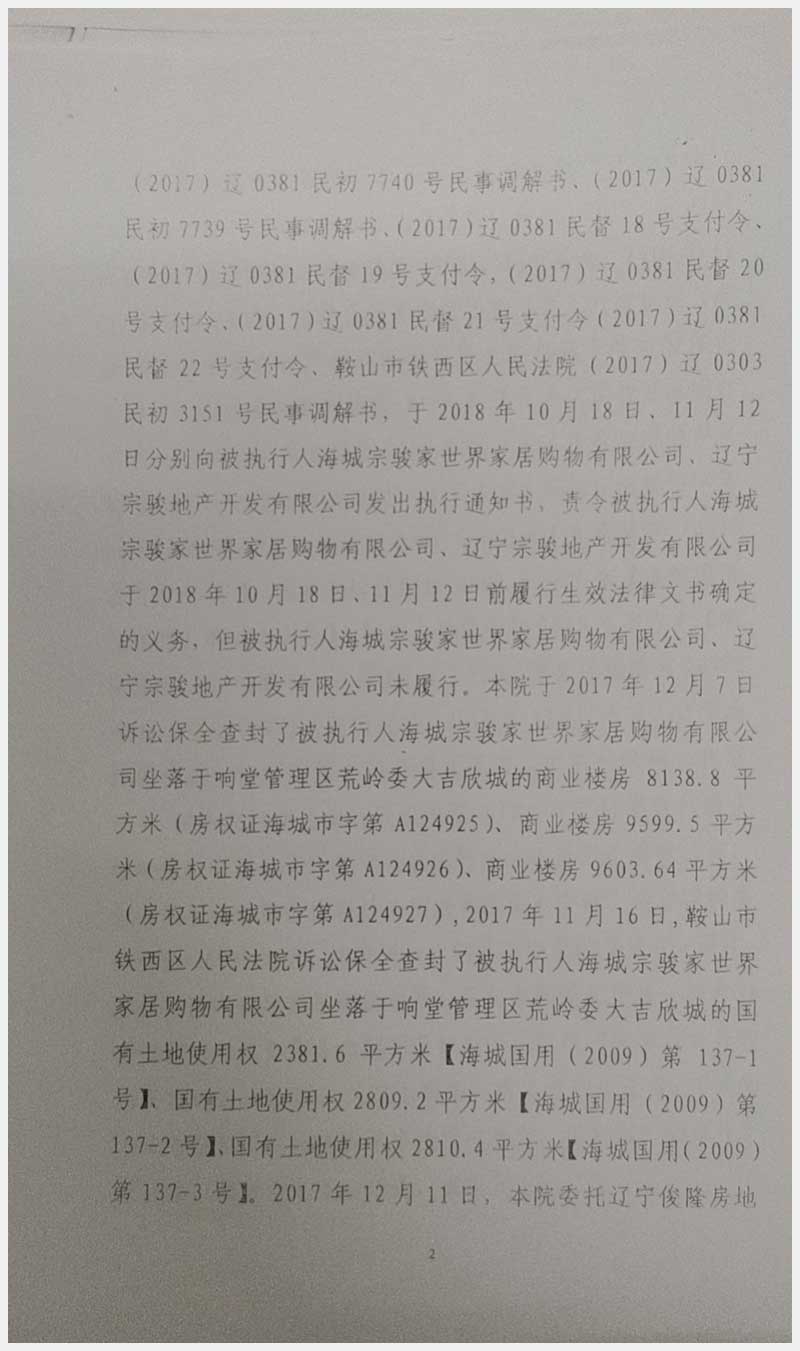 135號(hào) 海城宗駿家世界所屬的位于海城市響堂管理區(qū)荒嶺委大吉欣城商業(yè)樓房及國(guó)有土地使用權(quán)