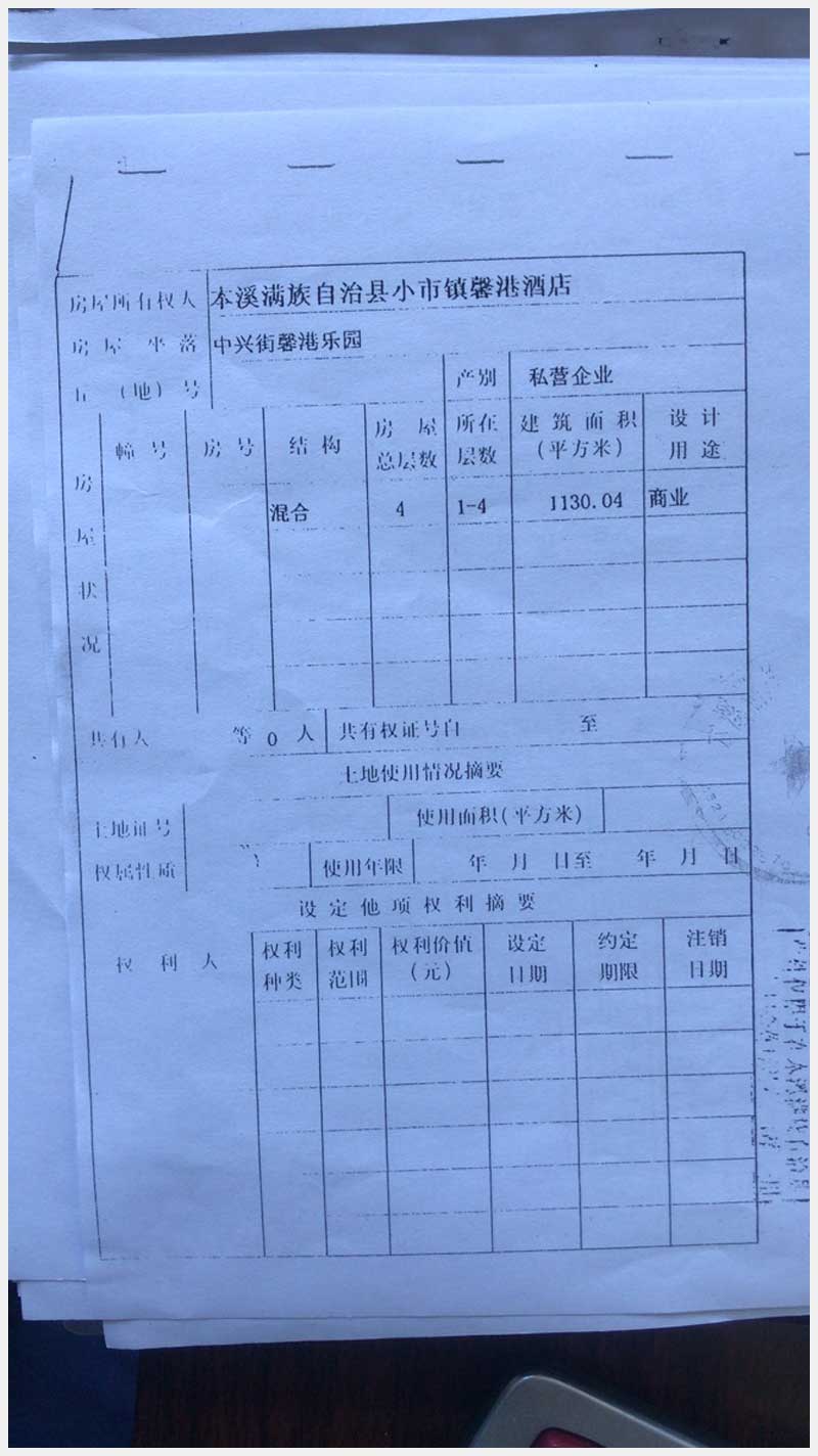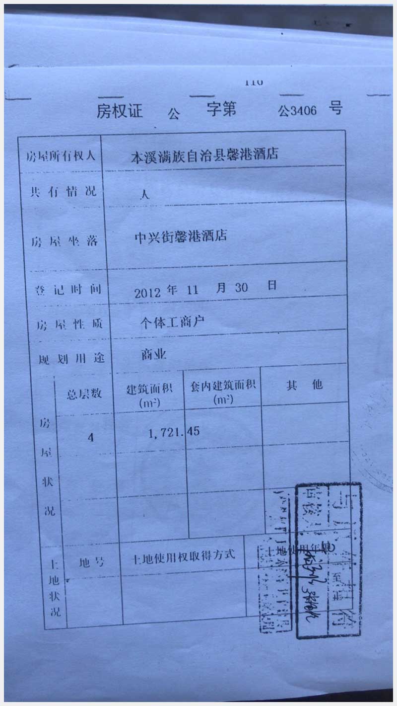 名稱:本溪滿族自治縣中興街馨港樂園馨港酒店房產(chǎn)及土地 面積:房產(chǎn):有證:4440.21㎡,無證:672.51㎡;土地:713㎡ 瀏覽次數(shù):1351