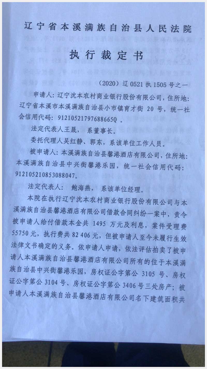 79號 本溪滿族自治縣中興街馨港樂園馨港酒店房產(chǎn)及土地