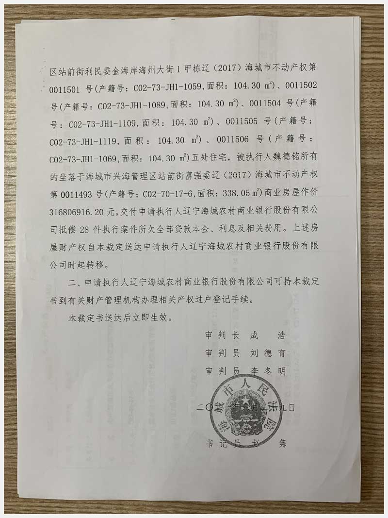 地址:海城市海州管理區(qū)荒嶺委大吉欣城 標的號:145-1