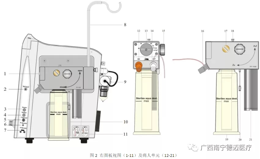 3.加熱管接口 14.呼氣管路接口