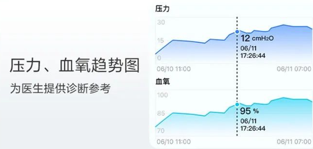 - 準確識別 OA,CA,H,LL 等呼吸事件,智能調節(jié)提供更舒適呼吸體驗。
