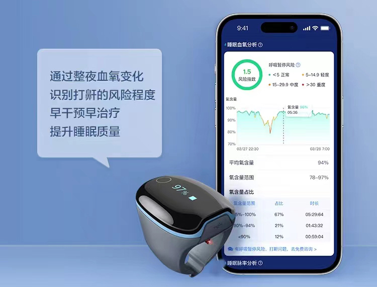 智慧連接血氧 / 心電監(jiān)測,全方位睡眠數據管理,專業(yè)報告一鍵查看。