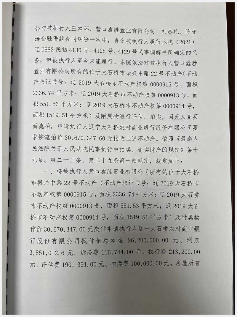 10號 大石橋市振興中路22號(鑫盛綜合樓)1號樓1單元房產(chǎn)