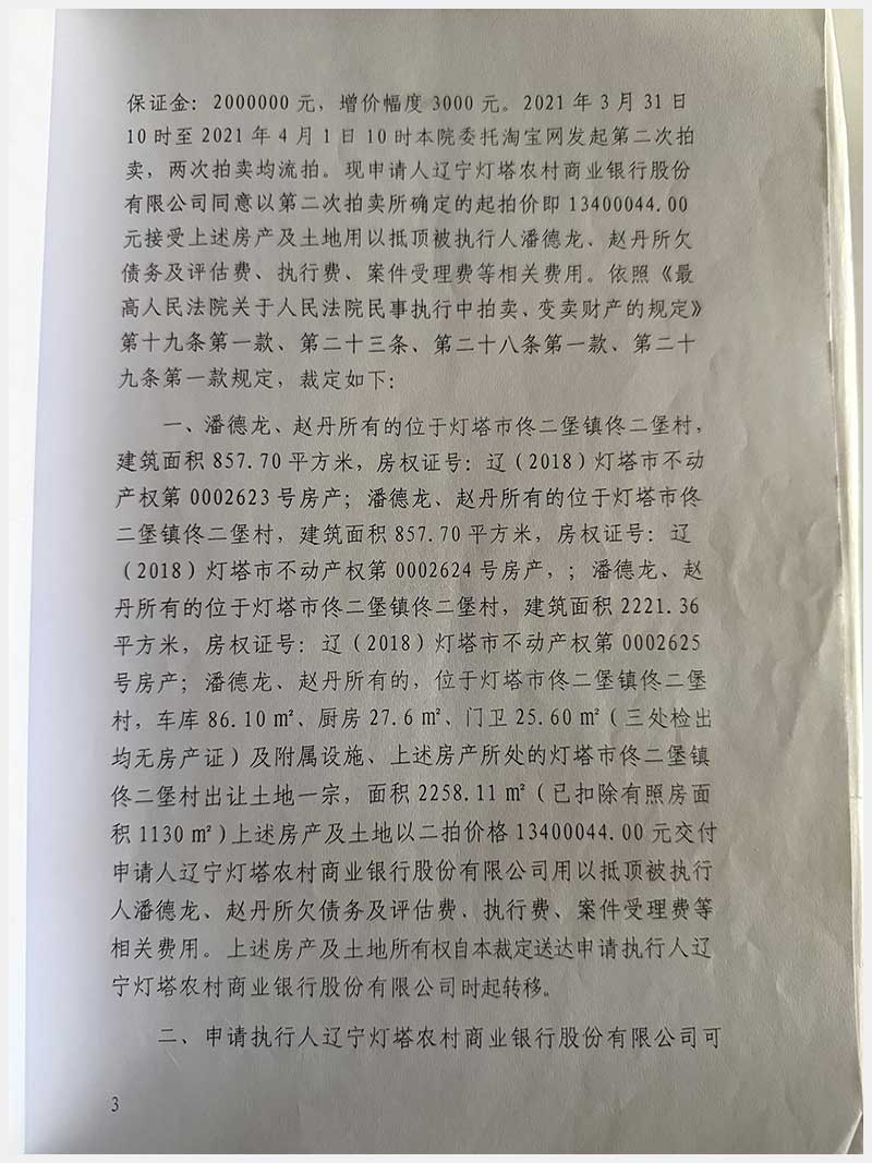名稱:燈塔市佟二堡鎮(zhèn)佟二堡村房產(chǎn)及土地使用權(quán) 面積:房產(chǎn):有證:3079.06㎡,無證:139.3㎡;土地:3388.11㎡ 瀏覽次數(shù):97