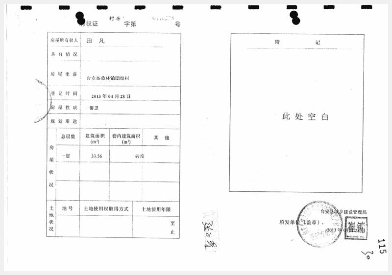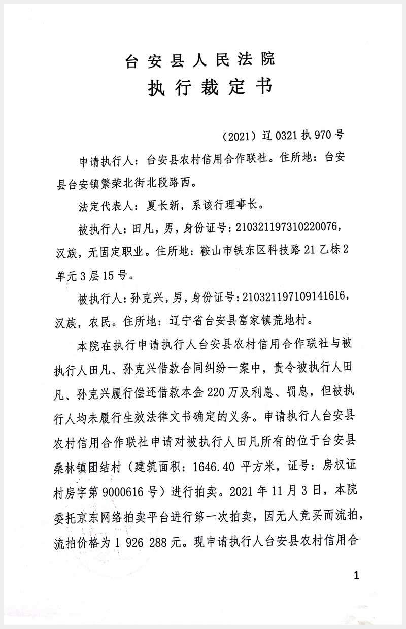 地址:臺安縣桑林鎮(zhèn)團(tuán)結(jié)村 標(biāo)的號:91